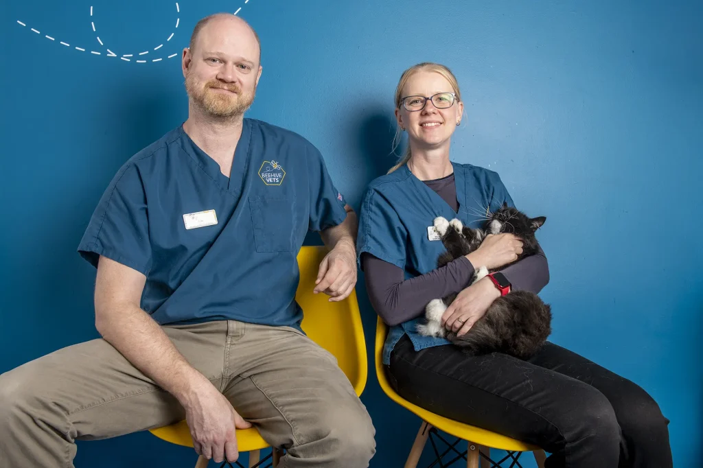 We’re not a corporate chain. We’re a family-run veterinary practice built on trust, empathy, and personal service. Luke and Esther have over 37 years of combined veterinary experience, and we’ve created a space where you and your pets always feel at home.